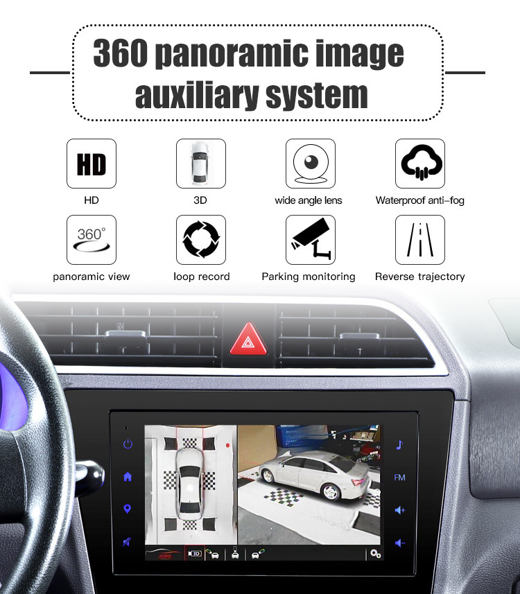 The Universal 360 Degree All-Around View Camera System is a professional vehicle safety solution designed to deliver a complete panoramic view around the car through advanced image stitching technology. By integrating four synchronized wide-angle cameras with a high-performance processing unit, the system creates a smooth, real-time bird's-eye view that allows drivers to clearly understand their surroundings at all times.